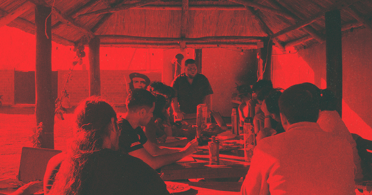 Por las noches aprovechamos los espacios para fortalecernos en nuestra historia política, la historia del Partido Comunista Argentino; y durante la noche del segundo día, después de las charlas mencionadas, nuestro Secretario General, Tomás Oroño, nos leyó el texto “El Pañuelo” de la autoría de José Schulman, en primer lugar nos contó la historia de “El Ciego”, del Negrito Avellaneda e Iris, y de Marcelo Feito, el “Teniente Rodolfo”, para después pasar a leer el texto, analizarlo y levantar las banderas históricas de nuestros camaradas que nos antecedieron en la organización de la revolución socialista; no faltaron las lágrimas, las emociones, los aplausos y los cánticos, como, por ejemplo: “Oh, El Negrito vive, en La Fede de los pibes” y “Es La Fede del Negrito, el Partido de Guevara, comunista hasta la muerte, por la Patria liberada”. La jornada cerró con gran emoción y entusiasmo para arrancar el tercer día de la Escuela Internacional con toda la mística y las fuerzas necesarias.